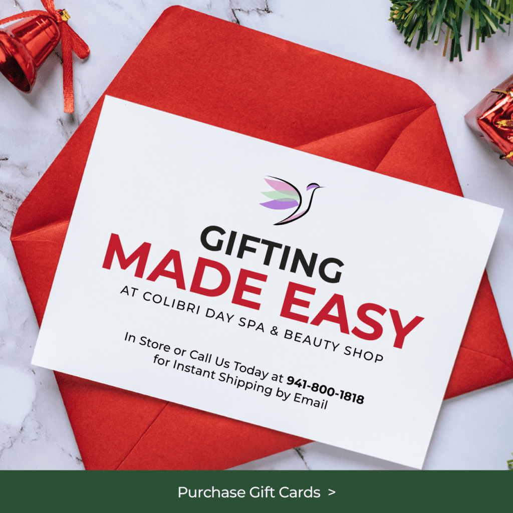 In the middle of the hustle and bustle of metropolitan Sarasota, Colibri Day Spa offers you a place of beauty, rest and relaxation, designed to bring your mind, body and spirit together in harmony. Our uniquely designed spa offers a wide variety of services including massage, skin care, waxing, nails and more.